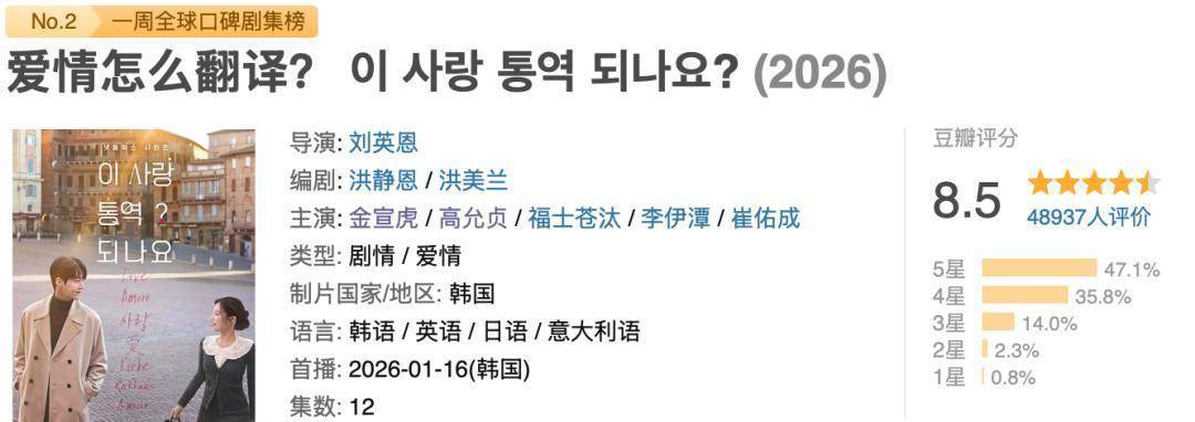 然后跨语言恋爱、真人秀旅程、三角修罗场,《爱情怎么翻译?》甜得很认真,也狗血得刚刚好...